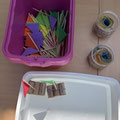 Beim Basteln wurde es sommerlich und vor allem bunt. Für unseren Spieleraum ist ein ganzer Schwarm Schmetterlinge aus Nudeln und Seidenpapier entstanden. Auch Bienen durften thematisch dann nicht fehlen. Nach geduldigem Aufwickeln der Wolle auf Zapfen konnten diese dann ebenfalls im selbst gebastelten Bienenstock mit einziehen.