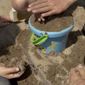Die Zeit draußen wurde trotzdem ausgiebig genutzt: es wurden Seifenblasen gemacht, im Sandkasten gespielt und tolle Burgen gebaut.
