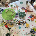 Ein großer Teil der Ferien stand im Zeichen kreativer Projekte. Direkt im Anschluss an den Umzug machten wir uns an die Gestaltung des Außengeländes: Holzpaletten wurden bunt lackiert, Holzhäuschen zur Dekoration gebaut und Trittsteine aus Beton und Fliesenstücken kreiert. Außerdem entstanden gebatikte T-Shirts, Makramee-Würmchen, gefilzte Werke und bunte Perlenarmbänder. Hier war für alle etwas dabei und die Ergebnisse können sich sehen lassen! :-)
